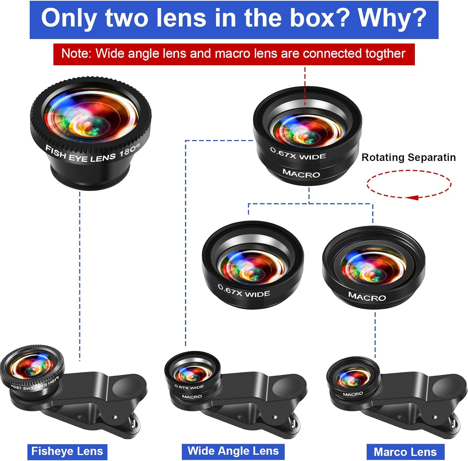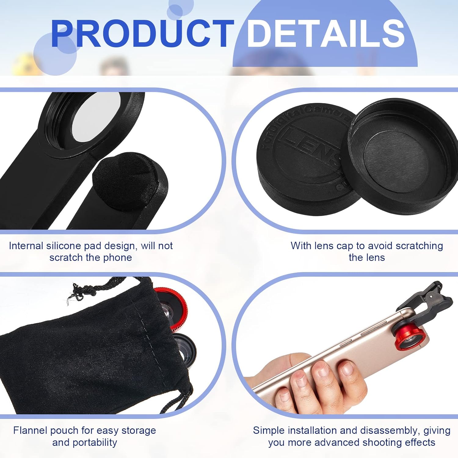 The fisheye lens provides a unique 180-degree perspective, perfect for creating artistic and eye-catching images. The macro lens lets you get up close and personal with your subjects, capturing intricate details and textures with incredible clarity. And the wide-angle lens expands your field of view, ideal for capturing landscapes, group shots, and more.